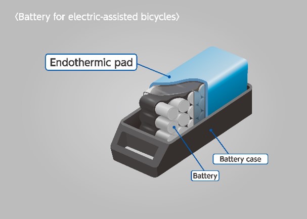 제품 형태는 유연성과 쿠션성을 겸비하고, 곡면에 부착하기도 쉬워 다양한 용도에 대응할 수 있습니다. 사용 예로는 사용된 LIB 회수 박스, 전동 어시스트 자전거, 전기차 배터리 등이 예상됩니다.